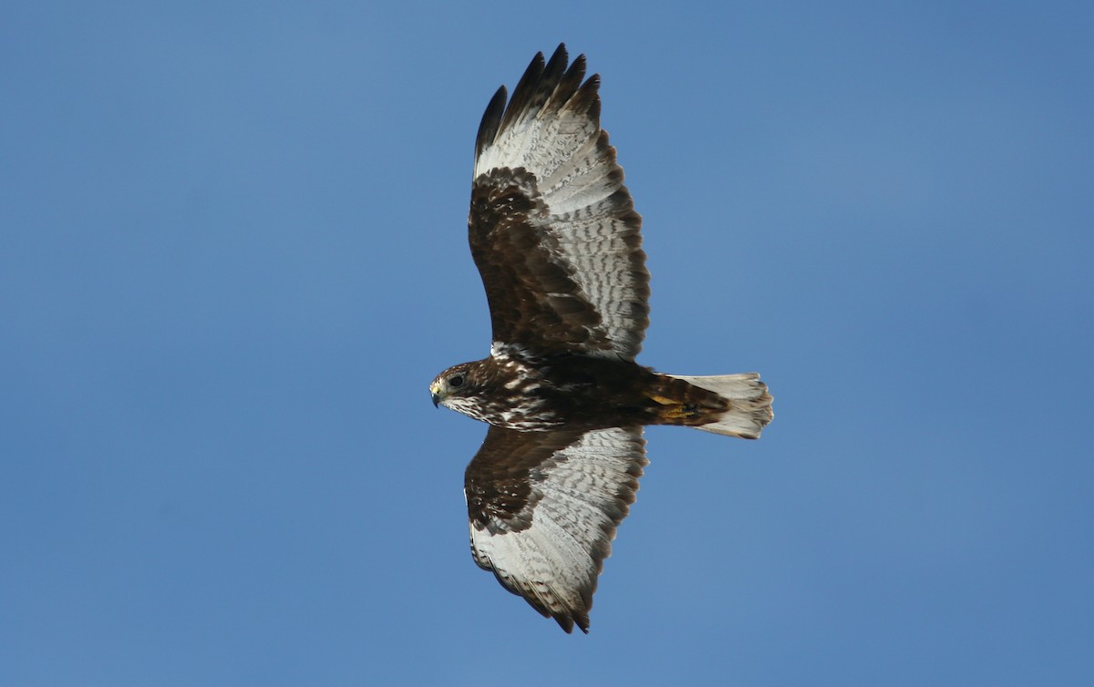 At first, I thought it might be a Cooper's hawk. The reddish-brown chest and light ventral tail feathers were misleading at distance without magnification, but when I brought my camera to bear, the identification became clear. What impressed me, once again, was the variation in feathering of these magnificent birds.